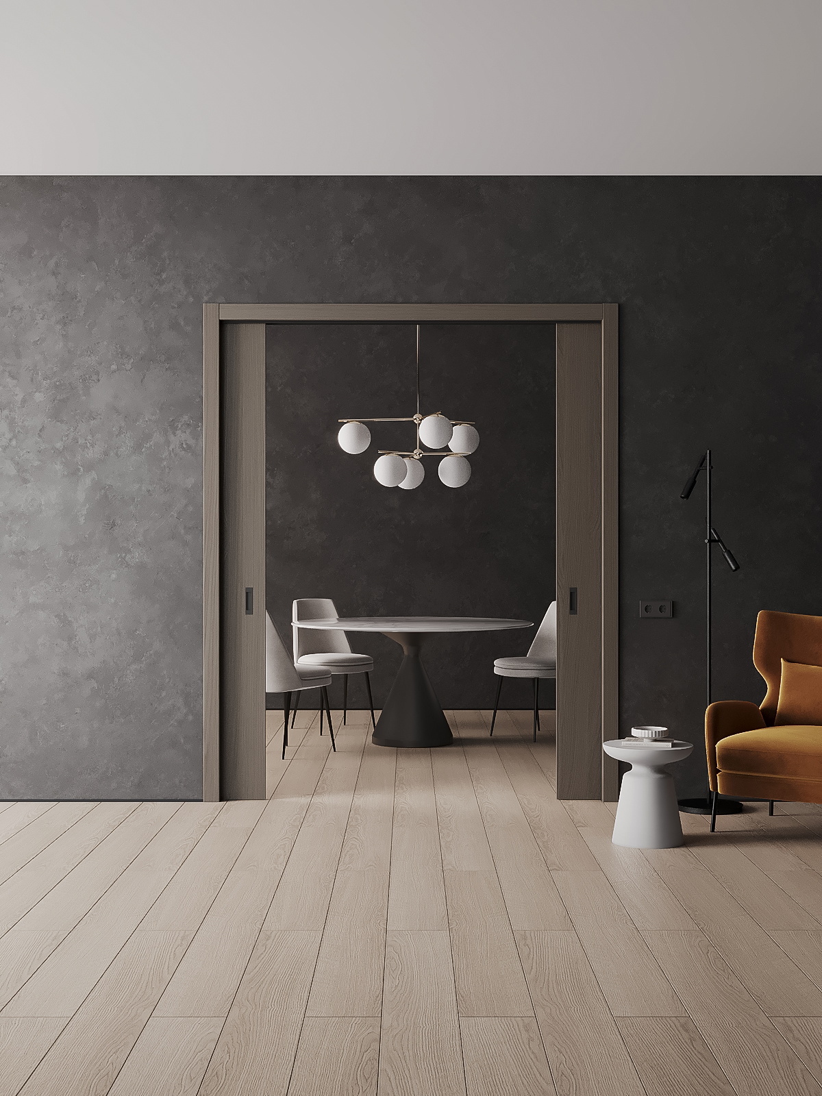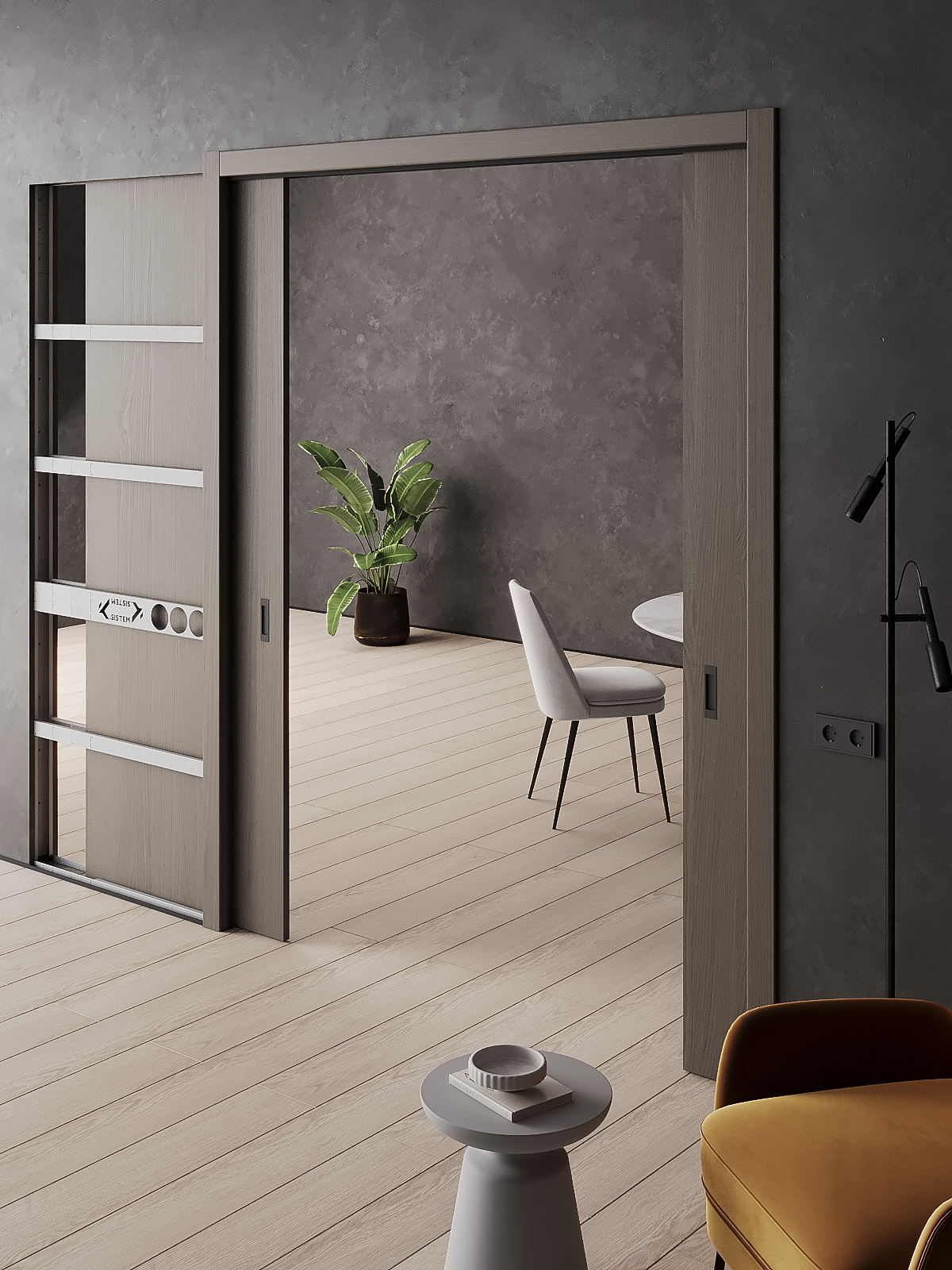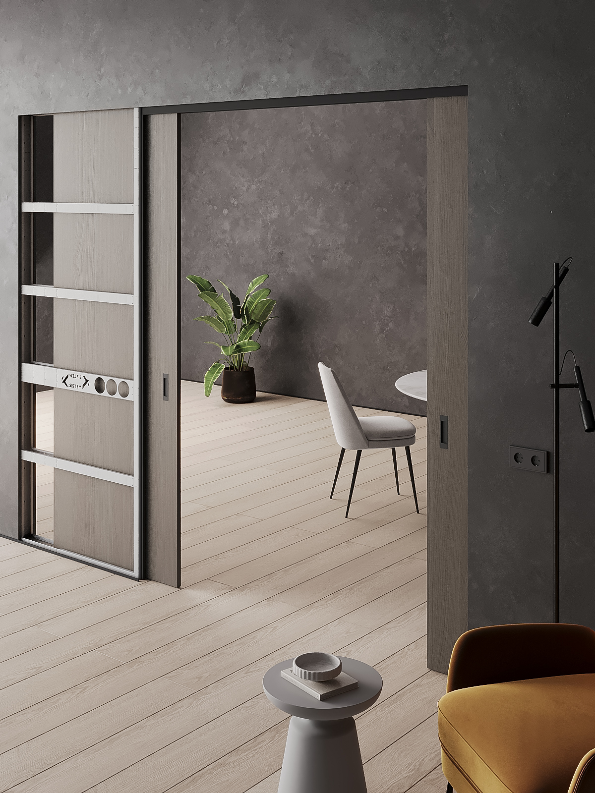 - Комплект для обрамления пенала три матовых цвета: белый, серый и черный. Универсальный профиль для обрамления под наличник или ГКЛ закрывает просвет между треком и полотном)